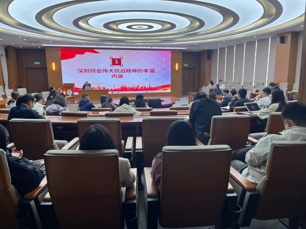 宣讲会特邀马克思主义学院教师童建安担任主讲。童建安首先阐释了伟大抗战精神的丰富内涵与核心要义;随后回顾了全国各族儿女在烽火岁月中同仇敌忾、共御外侮的英勇历史;探讨了伟大抗战精神在新时代背景下的宝贵价值与启示;最后论证了全民族抗战历程对于增强中华民族共同体意识所起到的关键作用。